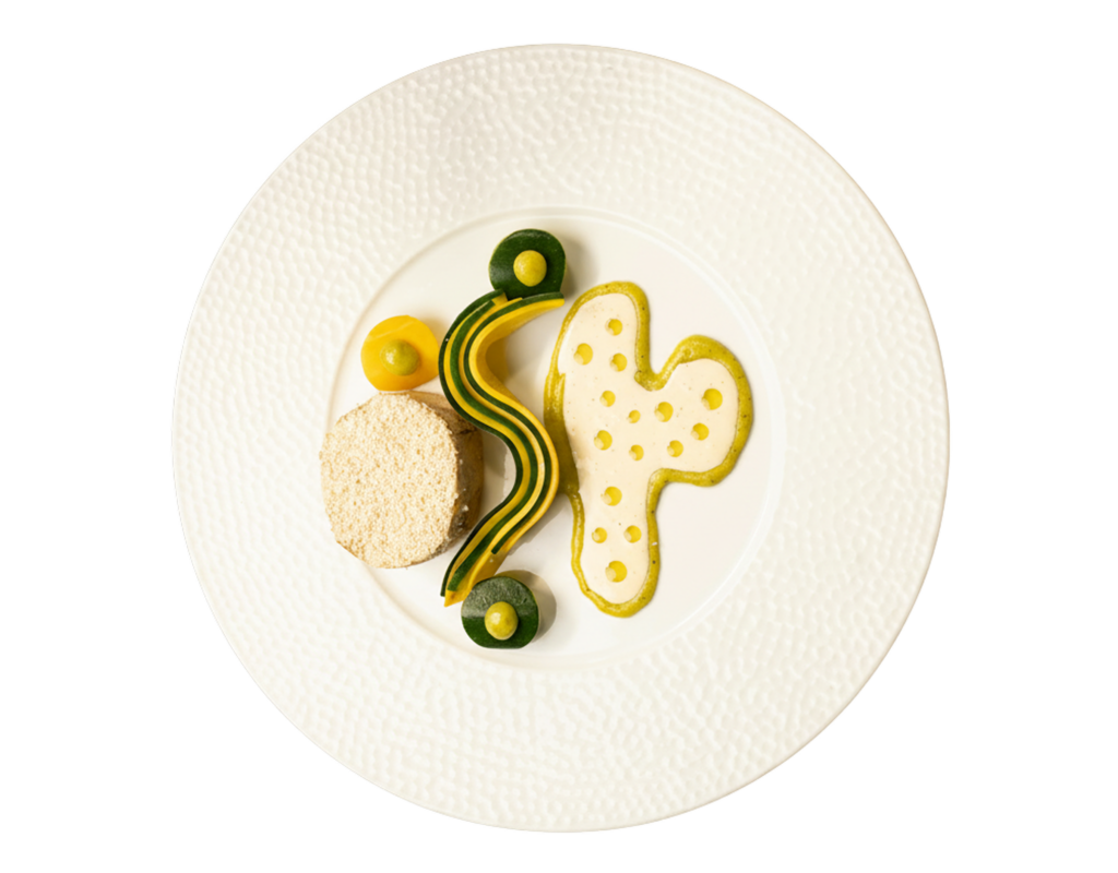 - Ballotine de volaille au panko, déclinaison de courgette, sauce poulette marbrée